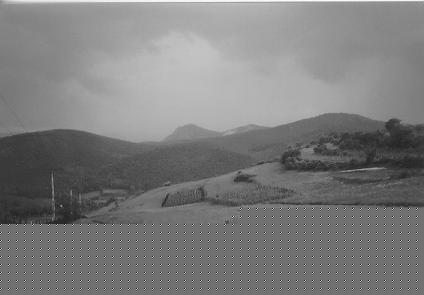 The fields of Podeni set against the peaks of the Apuseni Mountains